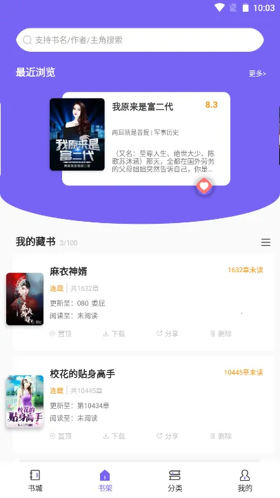 操作便捷:界面清爽,一键添加喜欢的小说到书架,方便管理,支持离线下载。