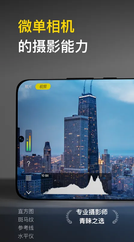1. 微单级拍摄体验:深度释放手机相机性能,提供类似微单的手动控制界面,还有直方图、斑马纹、参考线、水准仪,助你拍摄时掌握曝光与构图细节。