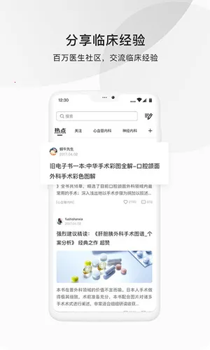 2. 丰富病例分享:筛选全科室典型病例,疑难病例在线分享,百万医疗圈内广大医务工作者在线沟通交流学习。