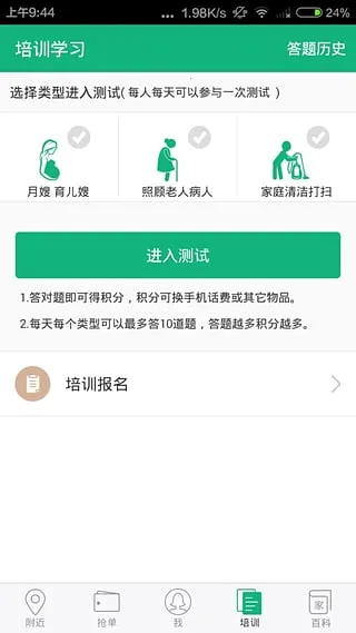 具备特有的家政培训功能,可实现在线测试、在线报名培训等服务;支持积分兑换话费、礼品等;提供本地生活服务,如话费充值、车票购买、公交查询等。
