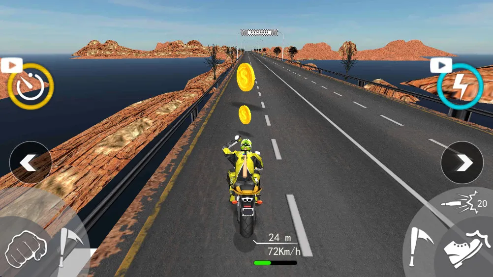 4、丰富玩法:有多种竞速模式,如计时赛、淘汰赛等,还支持与全球玩家竞争、一对一竞速。玩家通过虚拟按键与重力感应操控摩托,完成比赛获取奖励解锁更多内容。