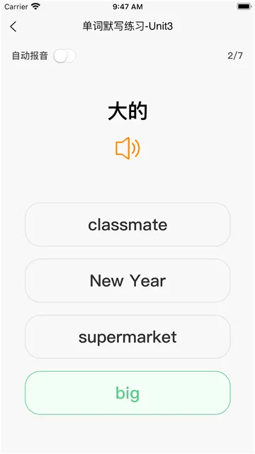 2、多样功能:支持单词语音播放默写,具备在线练习、下载打印、课本出题、AI语音报默等功能,还有实时打分、错题批改与错题本功能。
