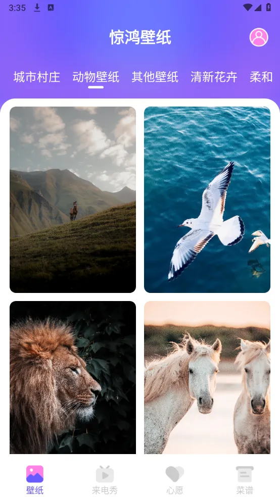 惊鸿壁纸安卓版是实用的手机桌面美化软件,提供海量精美无水印壁纸,涵盖游戏、动漫等多种类型,每日更新流行榜。还有丰富来电秀,界面简洁分类清,支持智能搜索、动态壁纸,且资源免费,一键设置超便捷 。