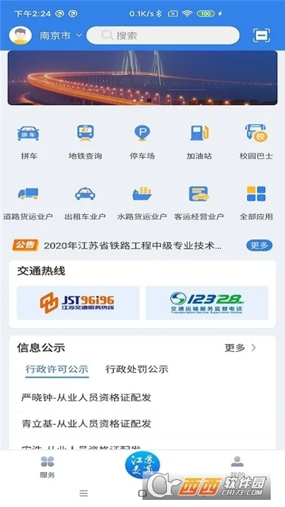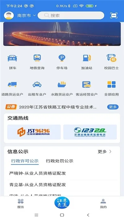 2、能发布江苏交通运输的新闻资讯、行业动态,提供公交、火车、航班等交通信息及交通设施查询,还为从业企业、人员及主管部门工作人员提供政务服务、信息查询与移动办公等功能。