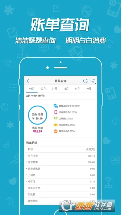1、一键话费查询超便捷,全方位支持实时话费、历史账单、积分余额等信息查询,随时随地清晰明了。