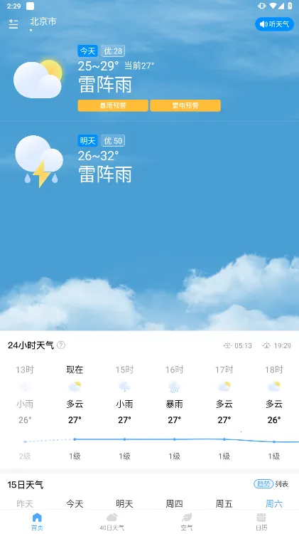 雨润天气最新手机版是功能强大的天气服务软件,能精准提供全国99%地区天气数据,含实时天气、未来多日预报、空气质量等。更新快且准,有灾害预警,可添加桌面小部件,还能按出行路线提示沿途天气。