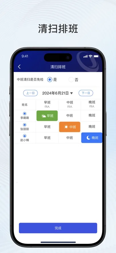 4. 亮点众多,可安排清洁工作,行程表方便员工查看;工作变动会发通知提醒;有严格隐私保护条规,让用户放心使用。