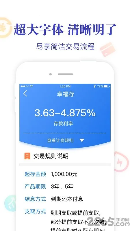 1、功能丰富:集在线办理定期、投资理财、生活缴费、手机充值、无卡取款、线上申请贷款、线上还款、转账汇款、医保缴费等便民业务为一体。