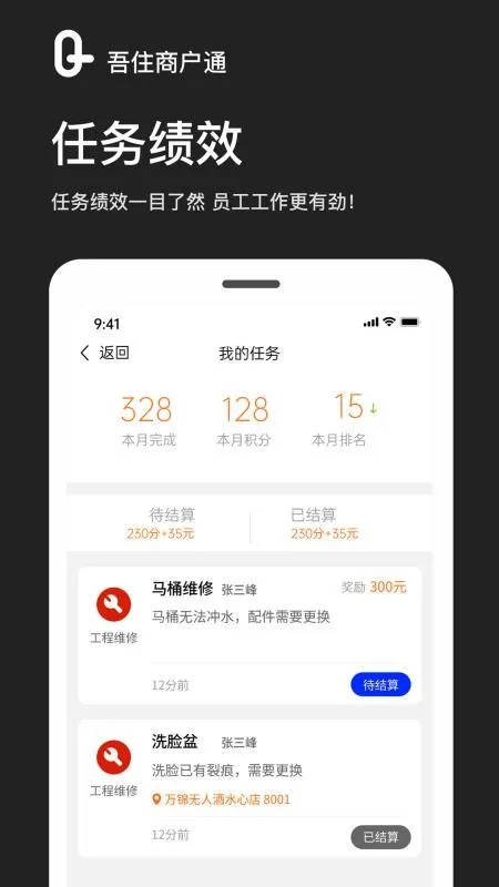 吾住商户通app最新版本更新啦!它能为酒店提供超棒的管理办公服务。房态中心可实时监控酒店房间状态,工作人员能轻松掌握每个房间的空闲情况,方便给住客安排房间。任务大厅全面展示各种酒店任务,员工能一键接单处理,完成任务还有绩效奖励,且任务绩效透明化,员工随时能了解自己的绩效详情。消息中心实时推送最新工作消息,让你及时掌握动态。最新版本还修复了已知bug,并添加了任务位置。这使得员工接单更便捷,能更高效地完成各项酒店任务,酒店管理者也能更全面地管理酒店业务,一站式处理全业务酒店工作,大大提高工作效率,助力酒店高效运营,快来下载体验吧!