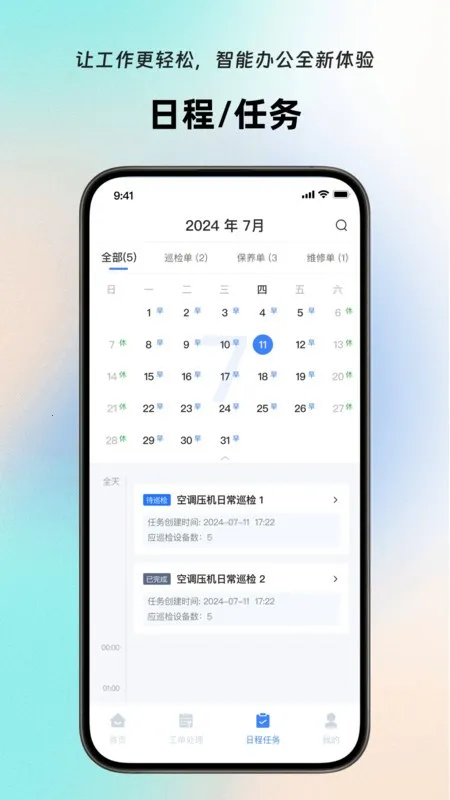 4、带来全新办公体验,助力高效办公,如通过巡检系统查看设备、管理日程任务等。