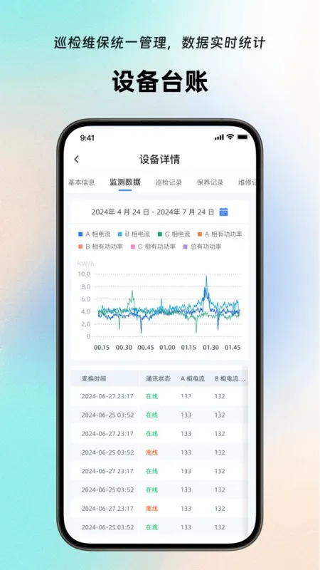 1. 提供专业化巡检系统,可在线对设备设施进行巡检管理,实现智能运维,随时掌握设备运行状态。