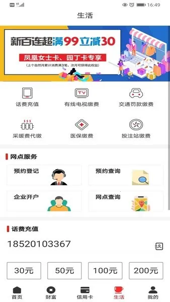 4、具备网点查询、预约,缴费充值及积分换礼等功能。