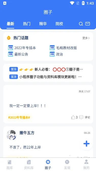 专插本刷题宝对想专升本和专插本的学子超有用!它是一款精品考试刷题神器。功能超强大,有海量题库,涵盖公共课、专业基础课、专业综合课等,2024年统考真题全部更新。能解决大家刷题需求,助你熟悉考点。每日一练免费开放,严格按考试大纲教材出题,还有优质解析,解题思路清晰,能举一反三。有我的错题和收藏功能,按考点考卷分类,方便强化巩固、查漏补缺。此外,还有模考大赛、刷题计划等多种刷题功能。它还有专业教研团队,紧扣大纲规范命题。有独家真题和自研校考专业课题库。各个科目都有配套教辅资料,像思维导图、重点笔记等。还有院校专业查询、志愿模拟填报等功能,能帮你找到考友一起奋斗。坚持刷题到考试,能帮你提高至少30分,轻松拿下专插本考试,赶紧下载吧!