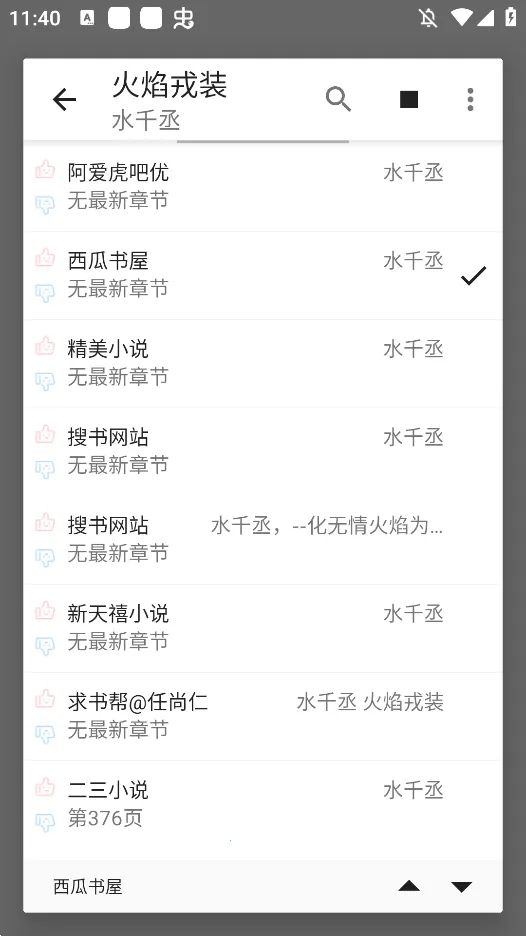 3、在书架长按已收藏的书籍,可以管理书源或检查更新,这样能确保你总是读到最新最完整的章节内容。