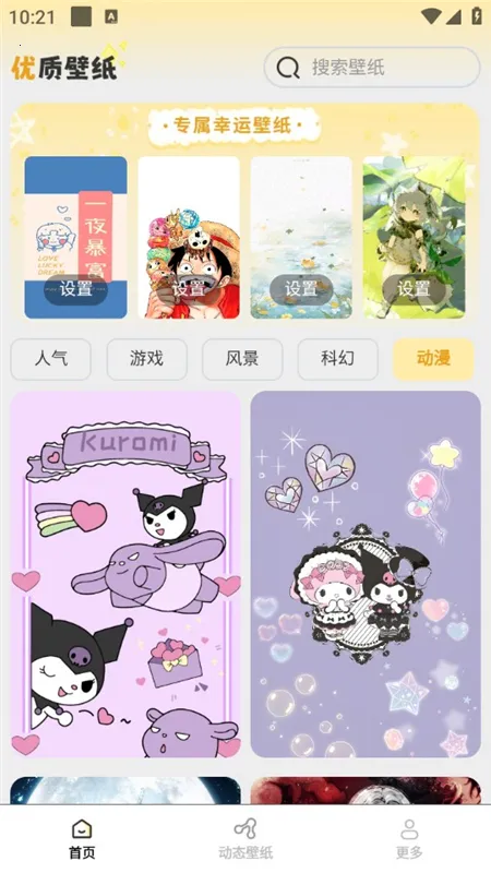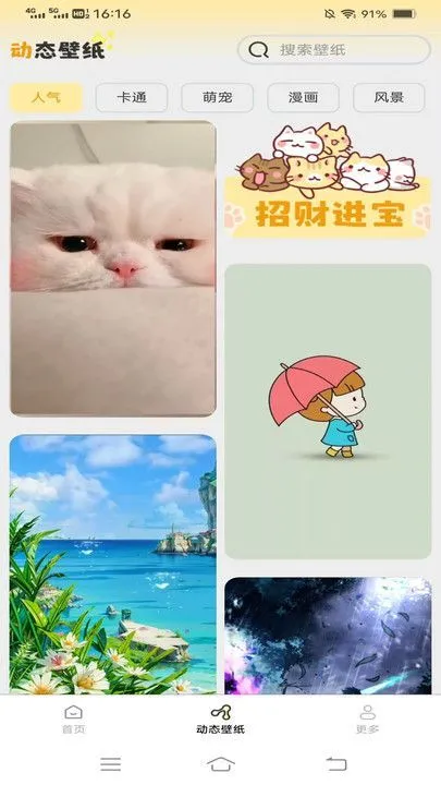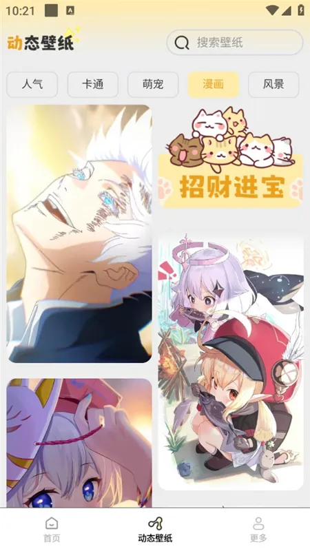 1、分类明确:壁纸分类清晰,设有艺术插画、动漫二次元、自然风光等专区,涵盖静态与动态类型,满足不同用户审美需求。