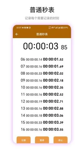 2、精准记录:非常精准无误的时间秒表记录工具,没有任何偏差,满足用户精细化记录时间的需求。