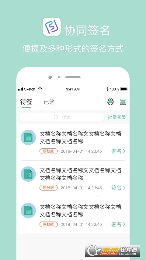 有了协同签名,签字签署轻松方便,告别找笔签字的麻烦。多种身份鉴别手段让合同签署身份真实可靠,不可仿冒与否认。还能在线自由管理电子证书,输入关键字快速搜索文件,签名文档能快速共享。经常要签名的朋友,赶紧下载协同签名,体验无纸化办公的便利吧!