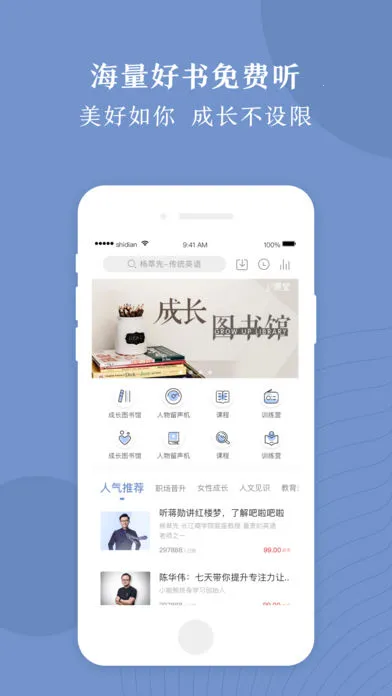 2. **丰富内容**:不仅有各类书籍,还包含行业顶尖知名导师分享的专业干货技能课程,涵盖升职加薪、变美变瘦、人文社科、精致女性成长、家庭亲子教育、生活美学、高效成长等各领域,全方位提升个人品质。