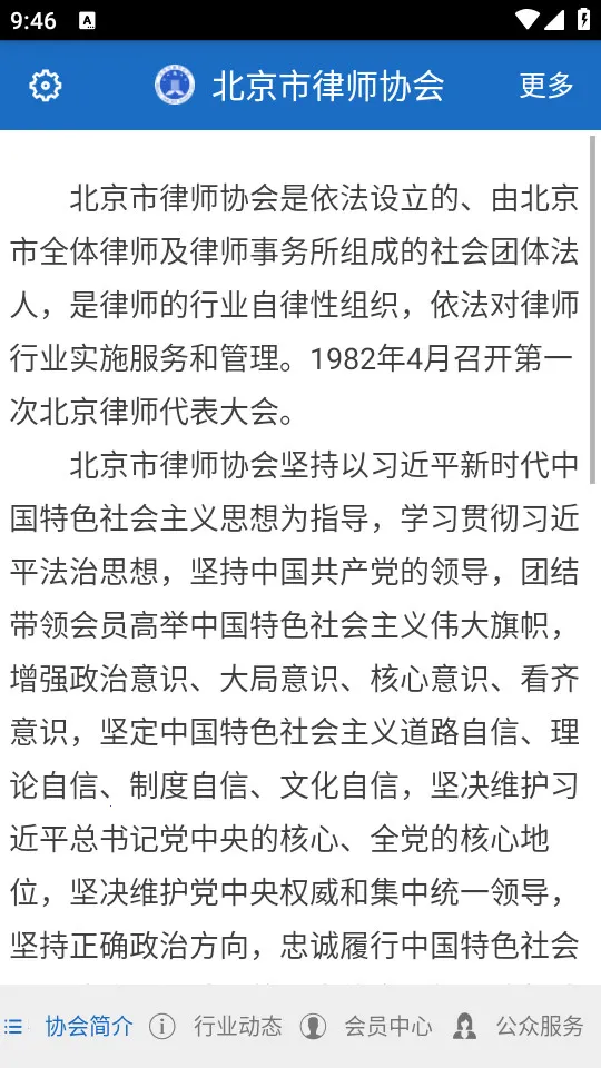 首都律师安卓版是北京律师协会官方推出的手机平台,为律师及公众提供行业资讯、公众服务和会员服务。有行业动态、协会简介等板块,具备会员信息管理、法规检索等功能,还有多项特色亮点及更新内容。