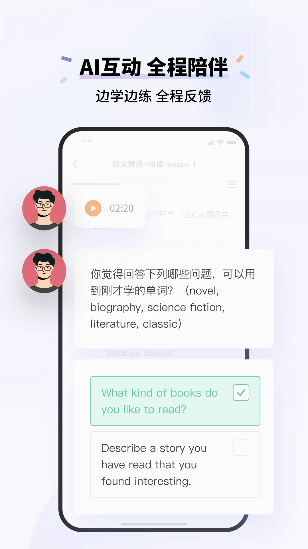 3、还具备丰富特色,像实时更新口语题库、AI互动课程等。