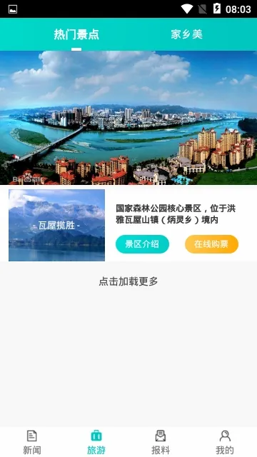 4. 生态旅游:展示景区入口,提供在线介绍及购票入口,游客可通过家乡美社区上传照片及视频,分享旅游体验。