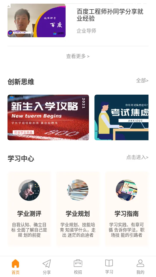 3、根据不同的学习内容划分为了不同的学习板块,让学习更加方便。