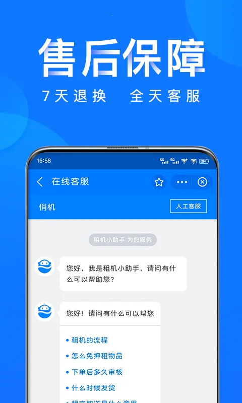 4、提供 3C 类产品免押租赁回收及新旧二手机线上交易闭环服务,让用户花小钱体验更多正品。