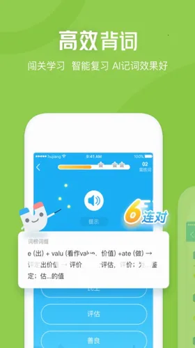 4. 多样功能亮点:全新产品体验,边玩游戏边练口语;个性化口语私教,实时打分;系统内容编排,推送地道美语对话。