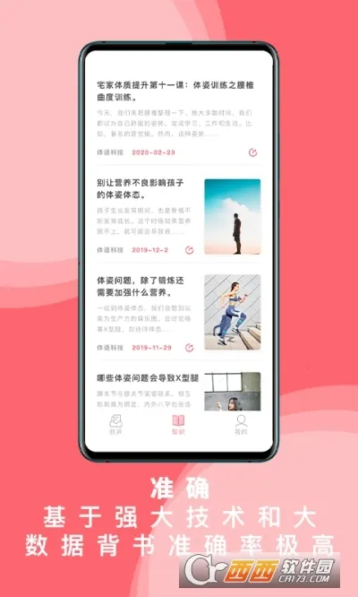 4. 丰富知识:平台收纳丰富相关文章,还有体姿矫正视频可播放学习。