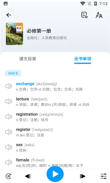 高中英语全册 2025 官方正版是实用的英语学习软件。支持听书,可自定义语速、模式;能与各版本课本同步点读,有丰富学习资源。界面友好,有学习记录、计划等功能,还可长按查词,优化性能体验佳 。