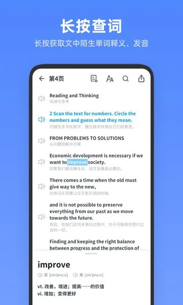 2、同步点读:可与各版本高中英语课本同步,课文单词内容同步翻译