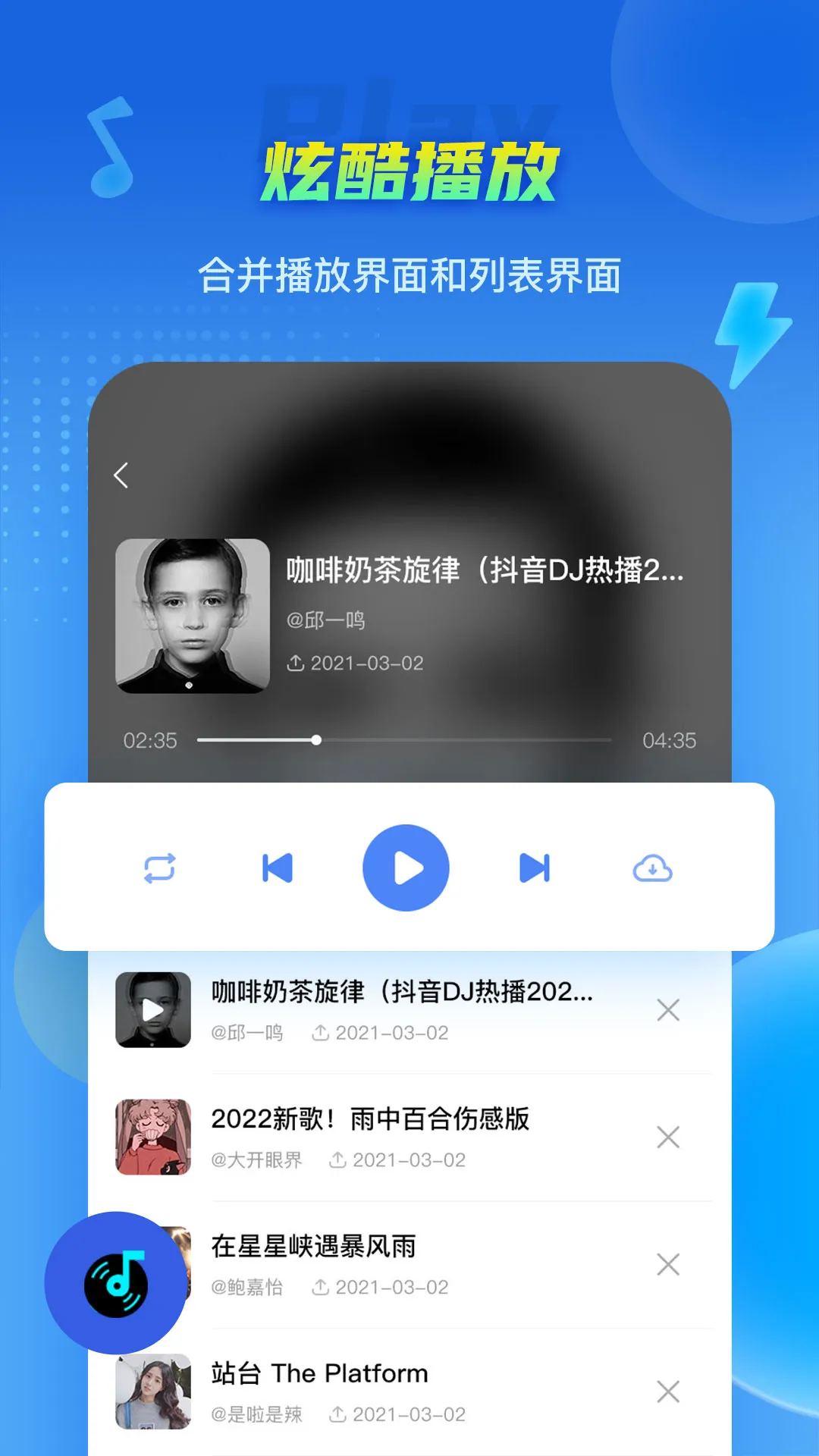 2、具备高清音质在线极速播放与多线程下载技术极速下载的特性,让用户随时畅享串烧歌曲魅力,还支持离线下载收听,不受网速流量干扰。