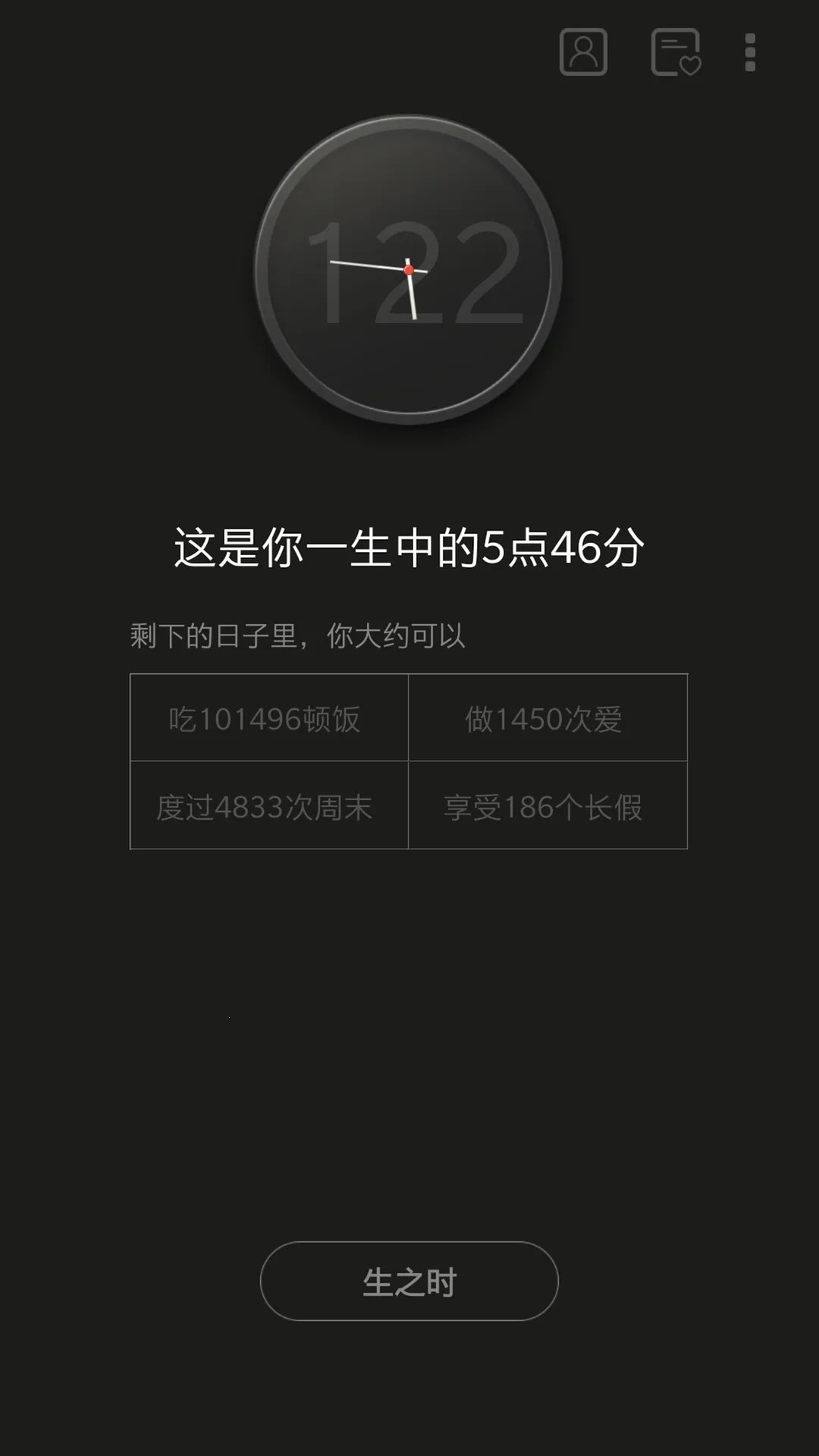 2、剩余时间预估贴心,设定预期寿命后可智能预估剩余生命时间,助于规划未来。