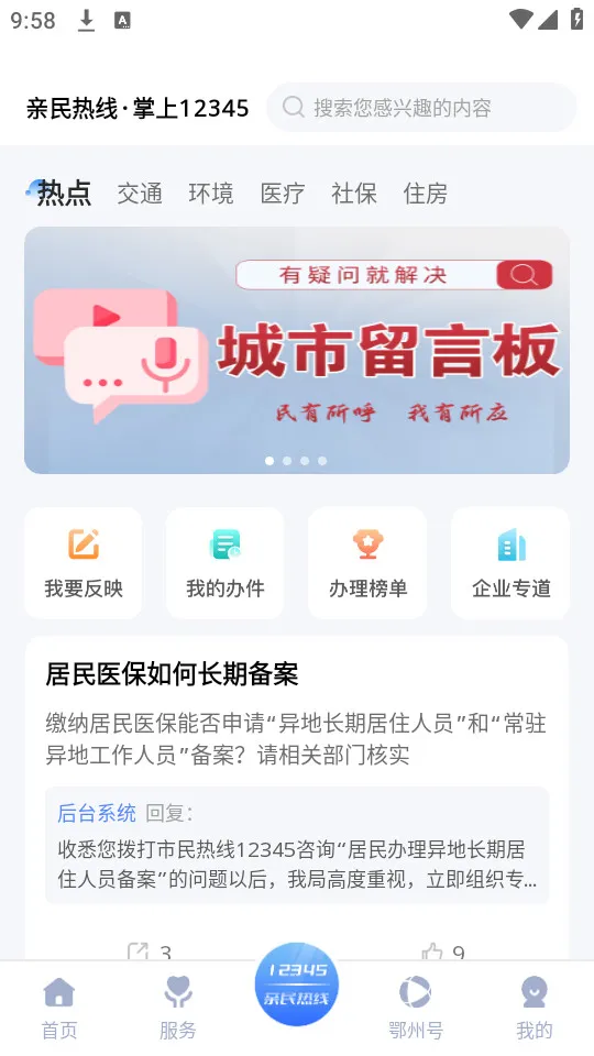 爱上鄂州app是鄂州本地城市服务平台,能满足你在生活各方面的需求。它涵盖医疗、交通、就业、政务、教育、旅游等多领域服务。你可以在线办事,获取同城最新动态,享受便捷生活。比如就医挂号,能选择医院医生查看号源进行门诊预约;生活缴费可直接在线缴水费、电费、物业费、燃气费;公交乘车码让你刷码支付公交费;智慧停车能在线查找附近停车场停车位。政务服务可查询办理公积金、不动产、社保等事务。还有新闻资讯推送本地时事,商家优惠发布打折促销信息。操作简单,界面清晰,带来良好体验。无论是日常出行、关注民生资讯,还是办理政务事务,它都能为你提供便利,让你的生活更轻松,快来下载爱上鄂州app体验吧!