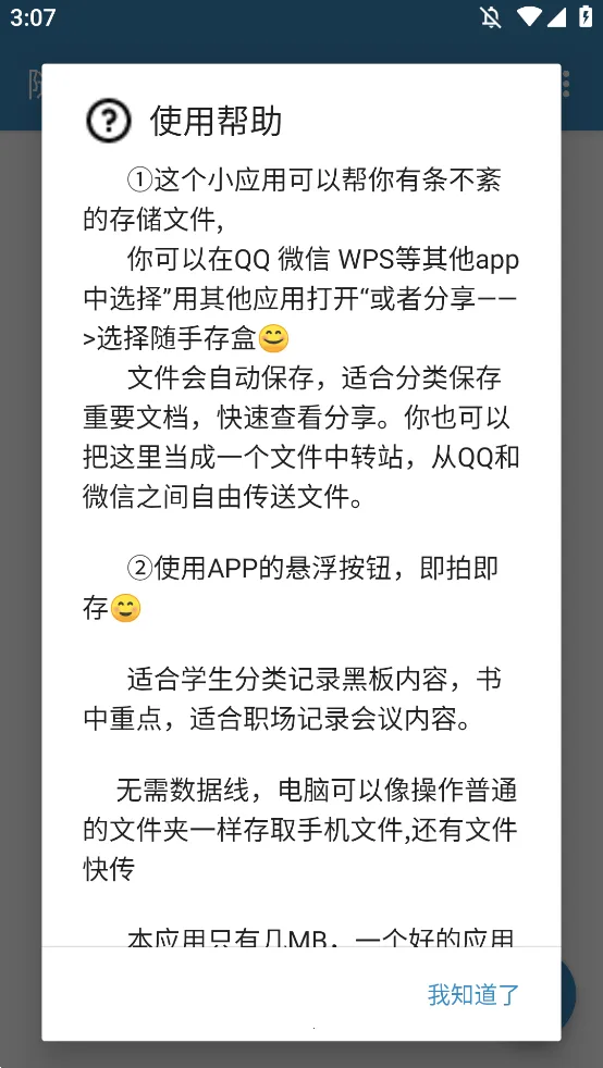 随手存盒app是文件管理工具软件,主打存储与管理体验。支持从QQ微信等接收文件,能分类管理、快速分享。界面简洁,支持多格式,有悬浮按钮,跨平台支持,还具备加密、定时备份等功能,解决文件管理繁琐问题。