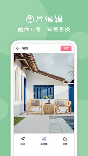 2、智能定位:自动检测位置,可手动更改拍照地点。