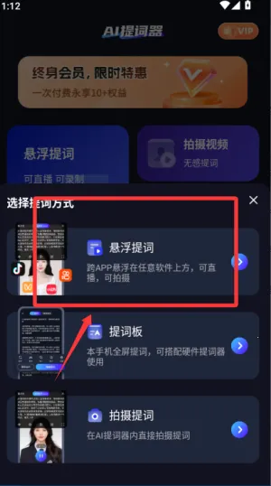 3、开启悬浮窗模式后,提词器会浮在其他应用上方,配合蓝牙遥控器可以随时暂停、快进或切换脚本,拍视频时 hands-free 操作更顺畅。