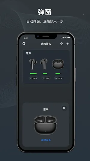 具备快捷弹窗连接功能,一键连接操作简易,耳机连接速度领先。支持多设备连接与自动回连,实现无缝切换,满足不同场景使用需求。操作界面简洁,一键完成连接与设置,还有自动检测更新功能。