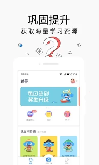 包含多学科作业、紧贴课堂知识点的关卡设置、知识闯关、PK 竞技场、能力卡片、即时排行、体力充能等特色功能,还有学情同步、家校通知、课外阅读、拍照批改等优势功能。