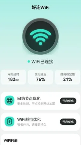 好连WiFi是一款贴心实用的智能网络助手,支持一键连接安全WiFi,带来快速稳定上网体验。内置专业工具可优化网络,还有四季好句。操作简单,功能丰富,如智能扫描、一键连接、节点优化等,是日常上网好伙伴。