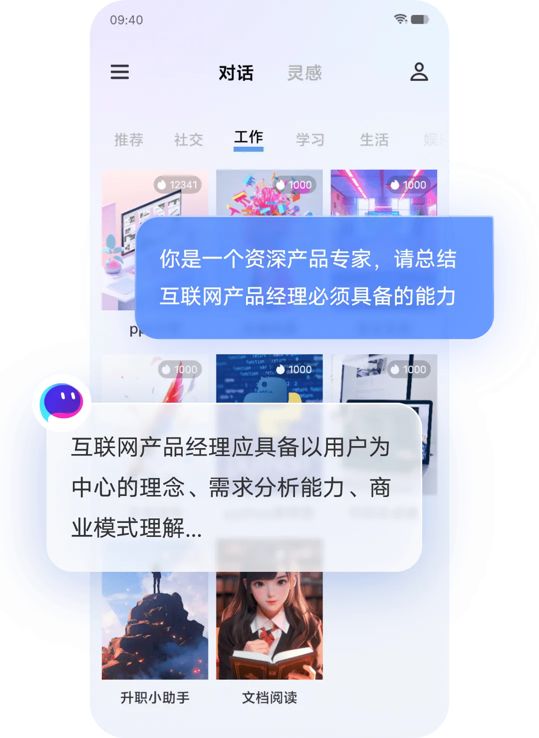 场景覆盖广:升级为探索的灵感广场,内置不同性格技能AI伙伴,覆盖文本写作、生活帮手、情感陪伴等各种日常场景。