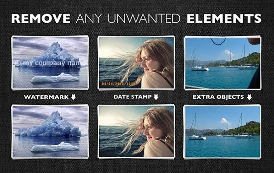 3、可去除日期戳、水印、额外对象,还能改善皮肤,填补皱纹等。