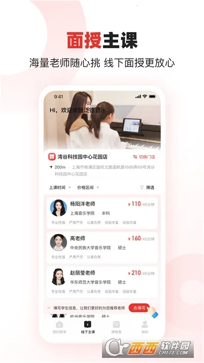 你想轻松开启音乐探索之旅吗?泛德社区智慧钢琴屋就能帮你实现!在这里,你可以利用智慧预约系统,通过先进定位技术快速找到附近智能钢琴,简单便捷地预约练琴。它还能提供多样化教学资源,有线上课程、一对一教学和小组课,无论在家还是音乐教室,都能确保你获得高质量音乐教育。课程内容不断更新,从零基础入门到高级演奏技巧,各种风格都有。其特色功能众多,比如个性化课程设计,根据你的进度和兴趣推荐合适课程;线上线下结合,让理论与实践完美融合;互动式教学,加强师生互动。软件亮点也不少,像地图定位找智慧钢琴、随心约琴、海量老师挑、便捷查看课表、课程结束有反馈等。有了它,陪练课能实时纠错,主课教学质量有保障,还有部分公益课程开放。快来下载泛德社区智慧钢琴屋,开启你的音乐梦想之旅吧!