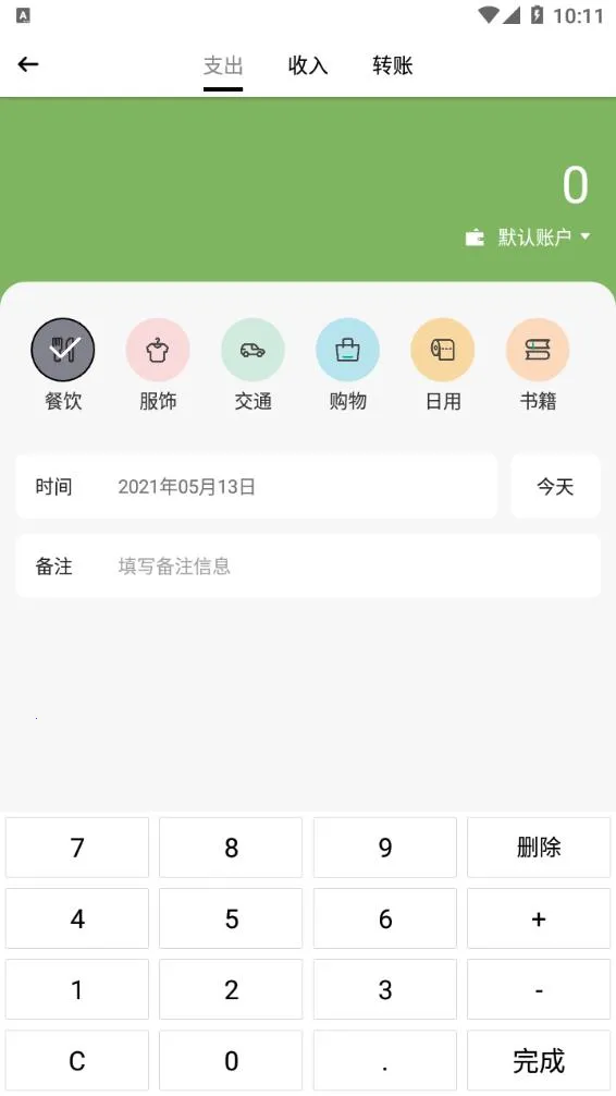 界面清新简洁,整体视觉风格干净柔和,图标与配色协调,带来舒适使用感受,降低记账心理负担。