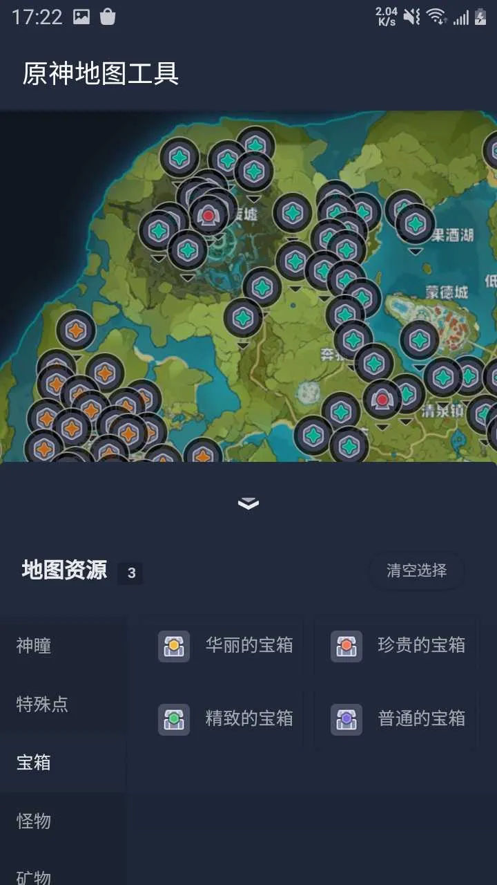 如果你是原神玩家,那这款全资源互动地图工具绝对值得拥有!它能帮你快速定位游戏内各类资源,像风神瞳、岩神瞳以及各种宝箱的位置都清晰标注,一目了然。不管是材料点、任务位置还是特殊地点,都有细致标注,方便你迅速找到所需信息。