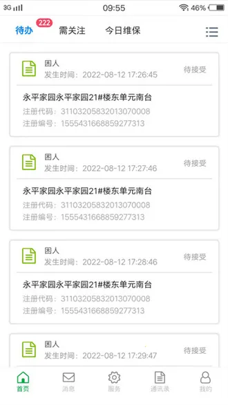 3. 会记录每一次维护信息,方便维保人员随时查看工作数据,掌握各小区电梯维护情况。