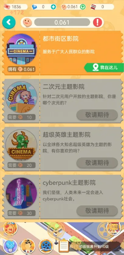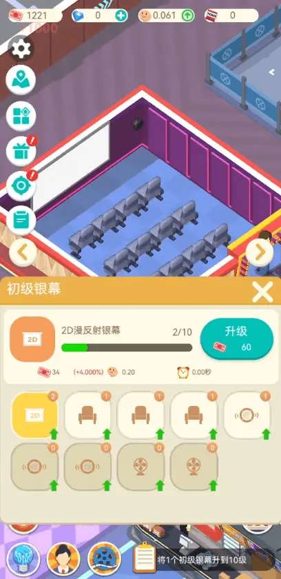 3、游戏玩法从单厅起步,逐步解锁多类型影厅,通过科学投资与分阶段改造,构建差异化观影体验。持续扩大经营规模,涵盖多方面提升。