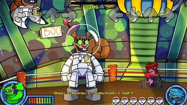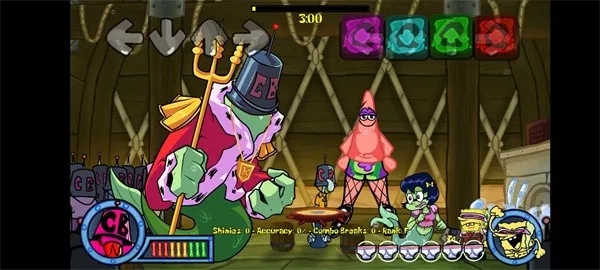 FNF海绵宝宝比奇堡模组是音乐节奏游戏,结合海绵宝宝IP与FNF玩法。有丰富含怀旧风的海绵宝宝曲目,玩家按节奏点击滑动完成动作,面对不同难度挑战,还有道具系统,在比奇堡海底世界开启节奏冒险。