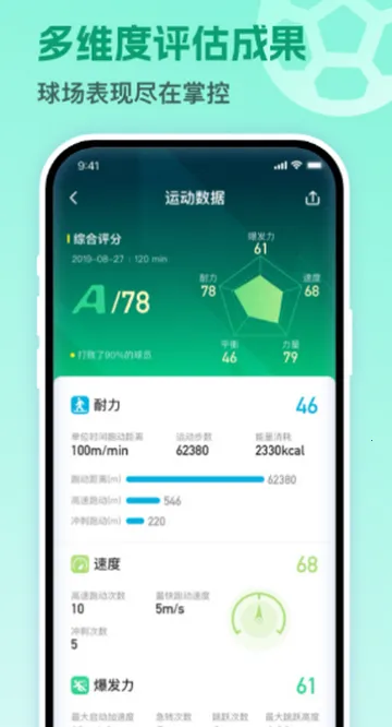 2. 依托精准球场定位与专业运动轨迹演算,实时记录并以可视化图表呈现足球教学、测试、赛事及球员分析等数据。