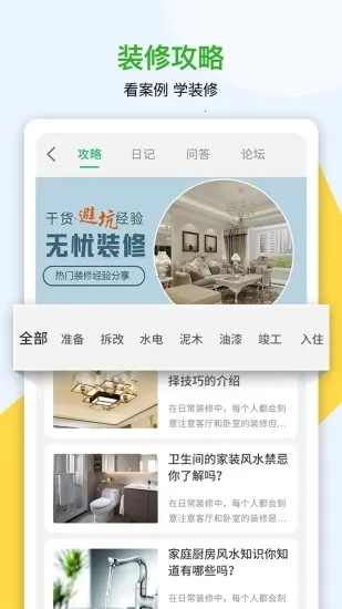 它功能丰富,装修知识全,能教您识别风格、选购主材辅料等多方面装修技巧。